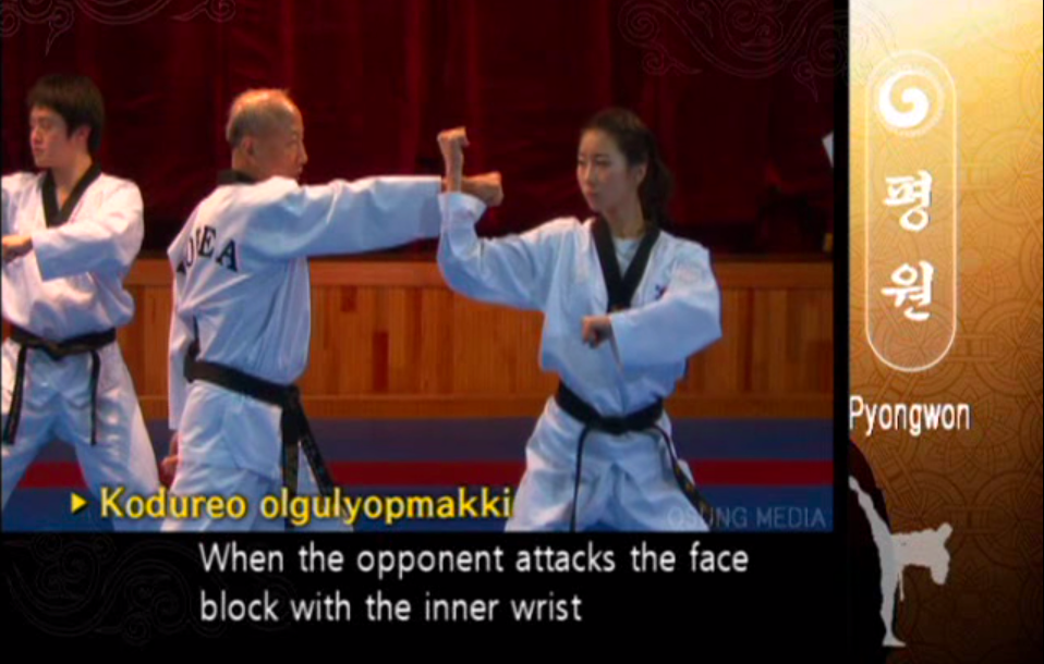 An Augmented High Side Block (also called an Augmented High Outward Block, or kodureo olgul yeop makgi) is a block in which the blocking arm protects the upper side of the body with the inner forearm (the thumb-side of the forearm). The palm of the fist faces the head. The assisting arm is positioned in front of the solar plexus with the palm of the fist facing downward.