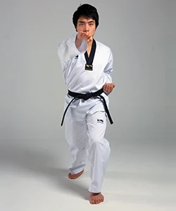 This outward motion is more commonly used for blocking however, such as with the Middle Ridgehand Block in the form Joong-Gun. In this form, the chambering occurs by starting the ridgehand at the opposite shoulder, not at the waist; both arms cross in front of the chest to chamber.