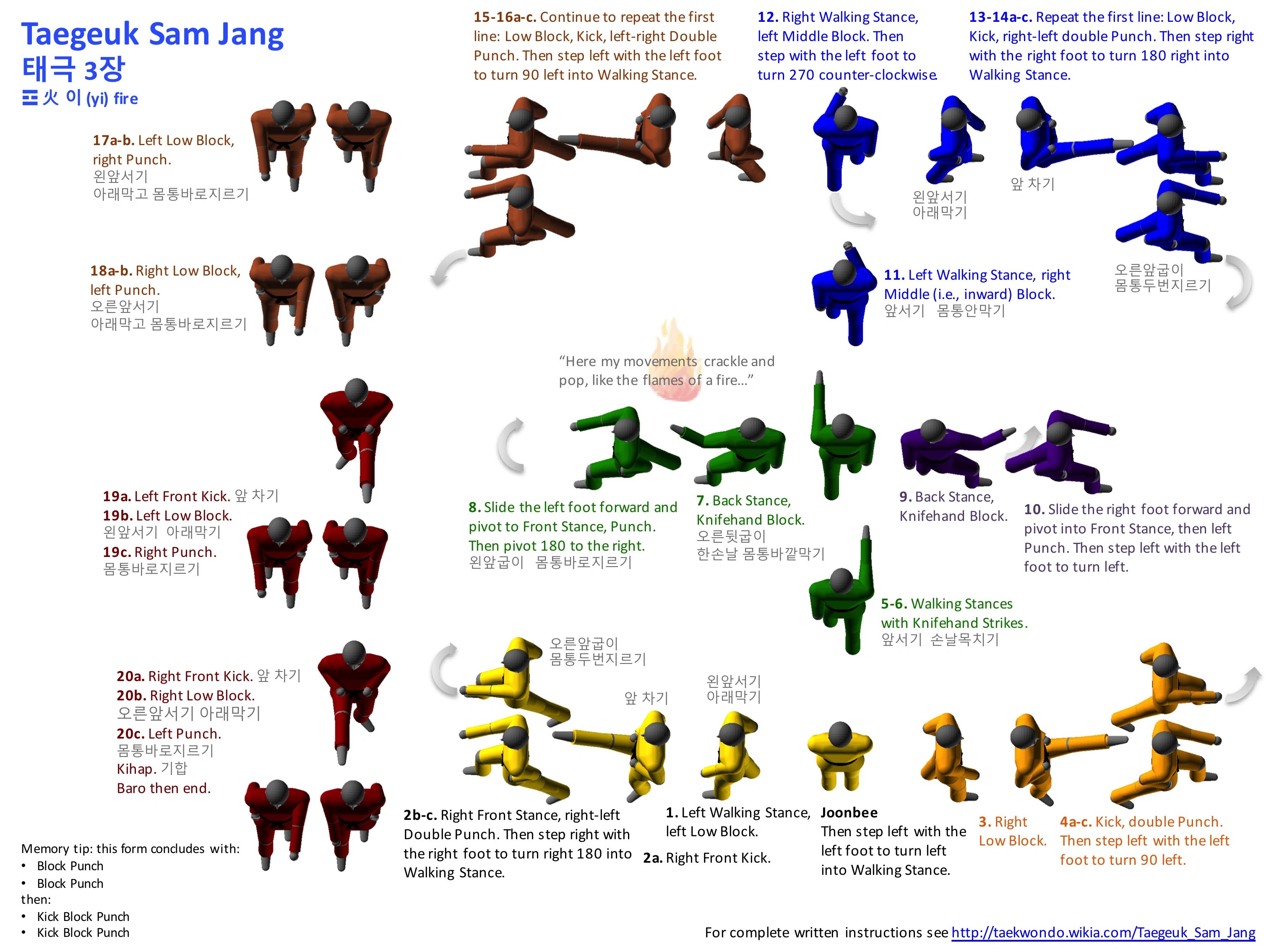 Taegeuk Sam Jang - Fire. This form should be performed with burning enthusiasm and bursts of power.
